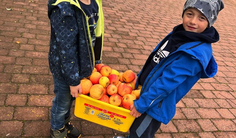 Helle Vorfreude in den Klassen 1a und 1c, denn für Freitag, den 10.10.2025 war ein ganzer Schultag als Apfeltag eingeplant. Schon am Vortag…
