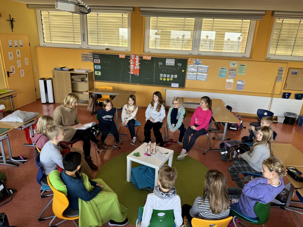 Am 17. November fand in diesem Schuljahr der Bundesweite Vorlesetag statt. In allen Schulhäusern der Grundschule Kolitzheim wurden die Schülerinnen und Schüler mit schönen Werken aus der Kinderbuchliteratur verzaubert. Gebannt lauschten die Kinder den Geschichten und durften es sich in den Räumen so richtig gemütlich machen. Die Vorleser/innen zeigten echten Einsatz, indem sie zum Teil mit Requisiten die Geschichten für ihre Zuhörer noch lebendiger machten. Nach dem Vorlesen versammelten sich alle, um als Dankeschön den Vorleser/innen eine Urkunde zu verleihen. Es war ein schöner Tag und wir freuen uns schon sehr auf den nächsten Bundesweiten Vorlesetag.
