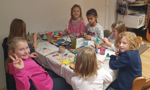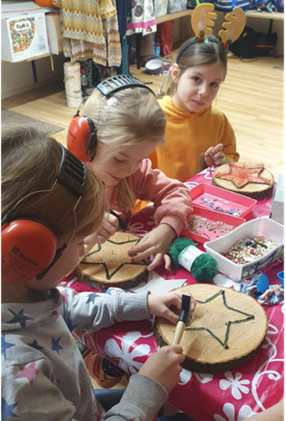 Die Adventszeit hat begonnen. An allen Tischen wird fleißig gebastelt. Ob aus Holz, Gips oder Papier, es wird gefaltet, geschnitten, geklebt und gehämmert und es entstehen tolle Kunstwerke. Wir haben auch geholfen, Dekoration für die Schule in Herlheim herzustellen.