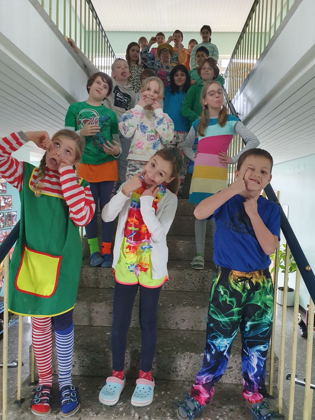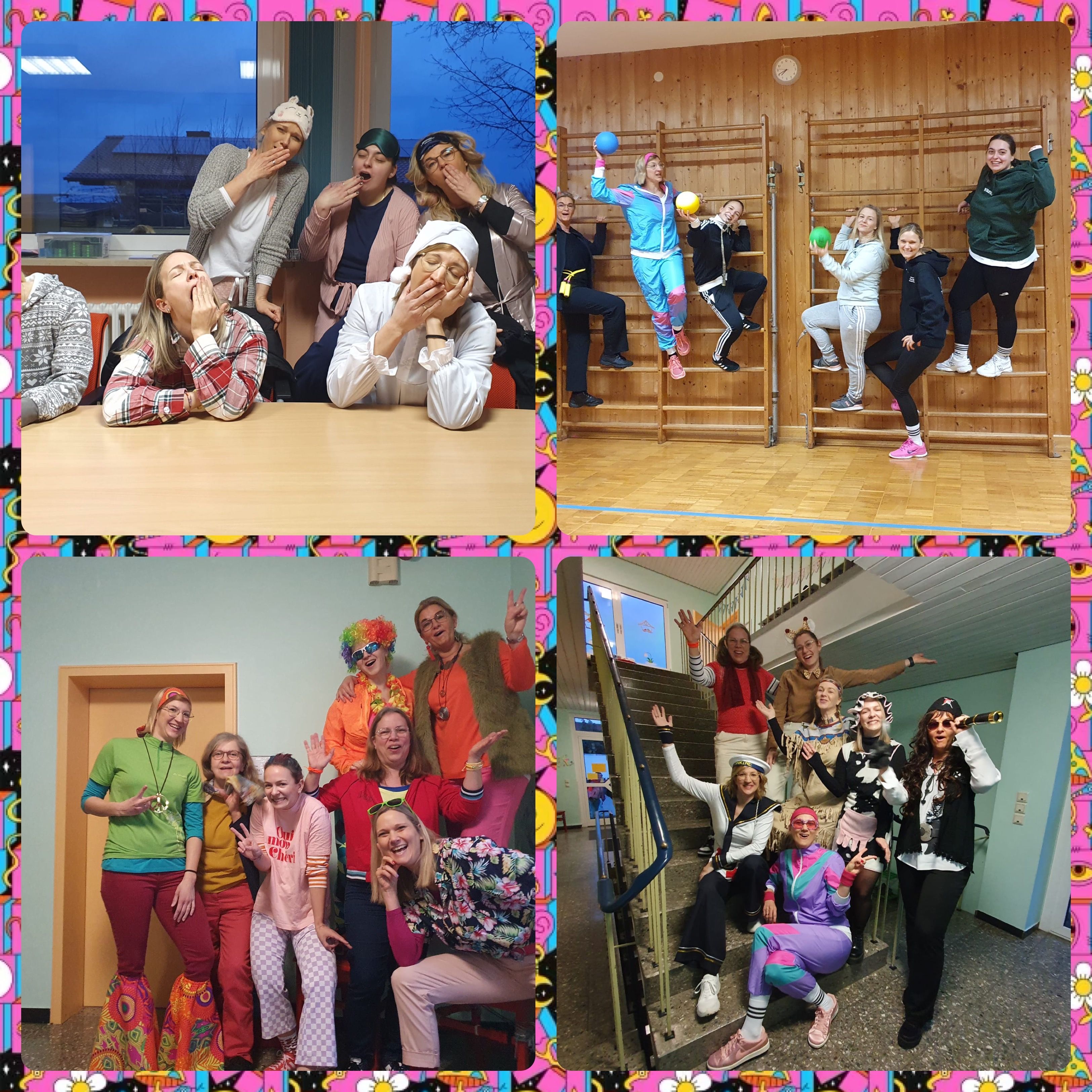 In der Mottowoche Fasching ging es in den Schulhäusern Herlheim und Stammheim „müde und verschlafen“, „schick und overdressed“, „sportlich“, „kunterbunt und durchgeknallt“ und natürlich „kostümiert“ zu.