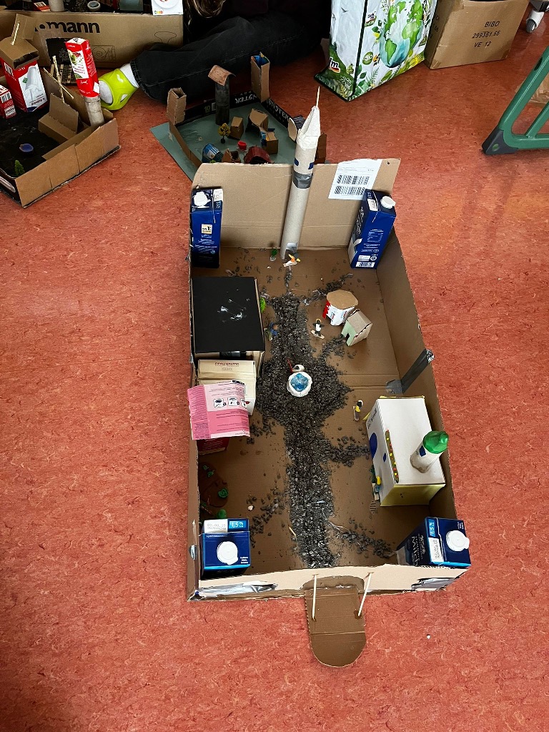 Am Ende des Projekts entstanden beeindruckende Mittelalterstädte, auf die die ganze Klasse stolz sein kann. Wir nutzten die fertigen Städte auch, um Präsentationen zu halten: Jede Gruppe stellte ihre Stadt vor und erklärte den anderen, welche Funktionen ihre Stadt im Mittelalter hatte.Das Projekt hat nicht nur Wissen über das Mittelalter vermittelt, sondern auch Kreativität, Zusammenarbeit und nachhaltiges Denken gefördert. Es war eine rundum gelungene und bereichernde Erfahrung für alle Beteiligten.