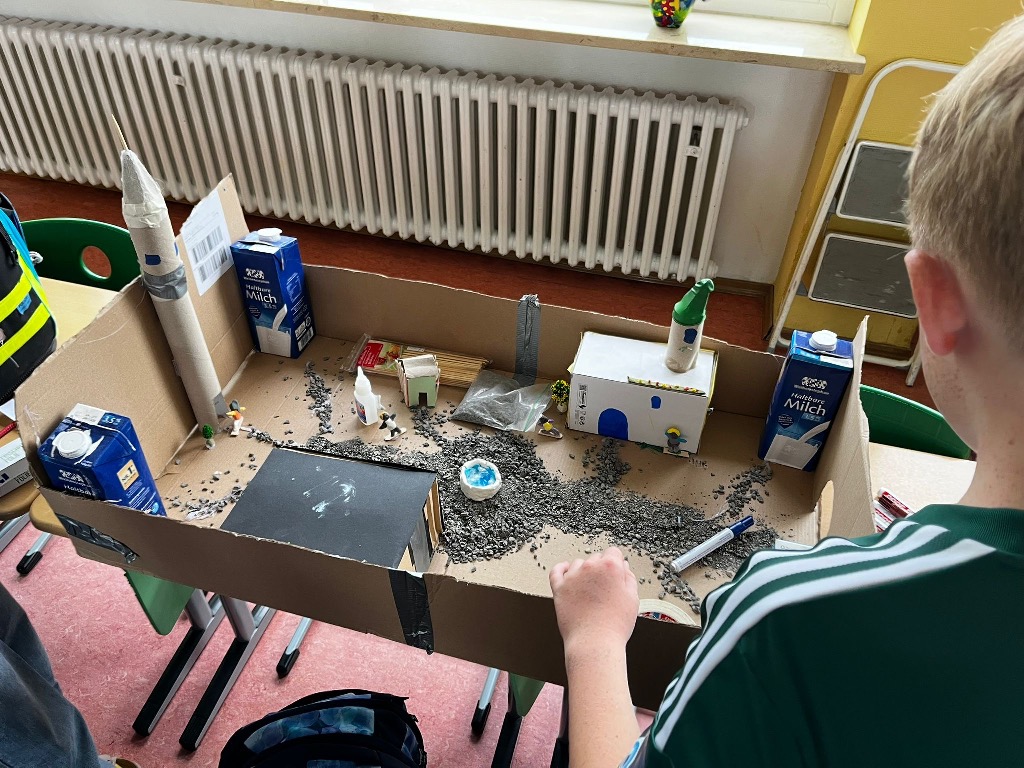 Im Rahmen des Heimat- und Sachunterrichts haben wir uns in der 4. Klasse intensiv mit dem Thema „Leben im Mittelalter“ beschäftigt. Um das Wissen der Kinder nicht nur theoretisch zu vertiefen, sondern auch praktisch umzusetzen, starteten wir ein besonderes Projekt: Gemeinsam haben wir in Gruppen mittelalterliche Städte aus Karton und recycelten Materialien gebaut.