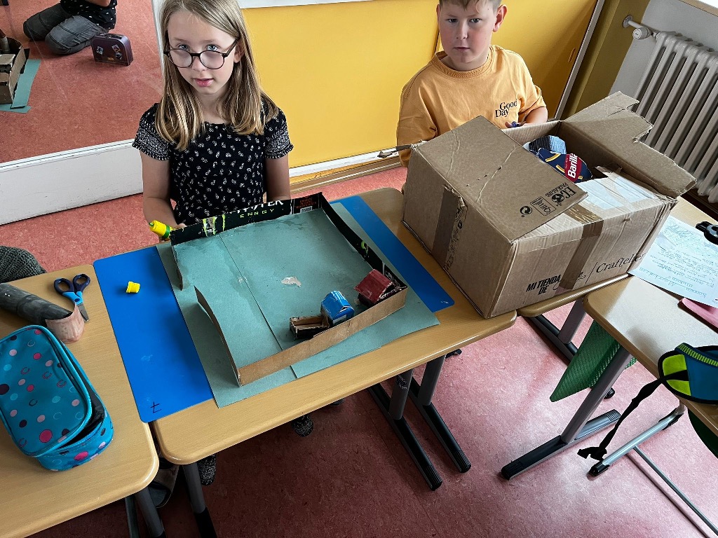Durch die Arbeit mit recycelten Materialien wie Kartons, Flaschendeckeln, Zeitungen und Papprollen lernten die Kinder auch, wie kreativ und sinnvoll man Müll weiterverwenden kann. Dabei waren handwerkliches Geschick, Teamarbeit und eine gute Planung gefragt.