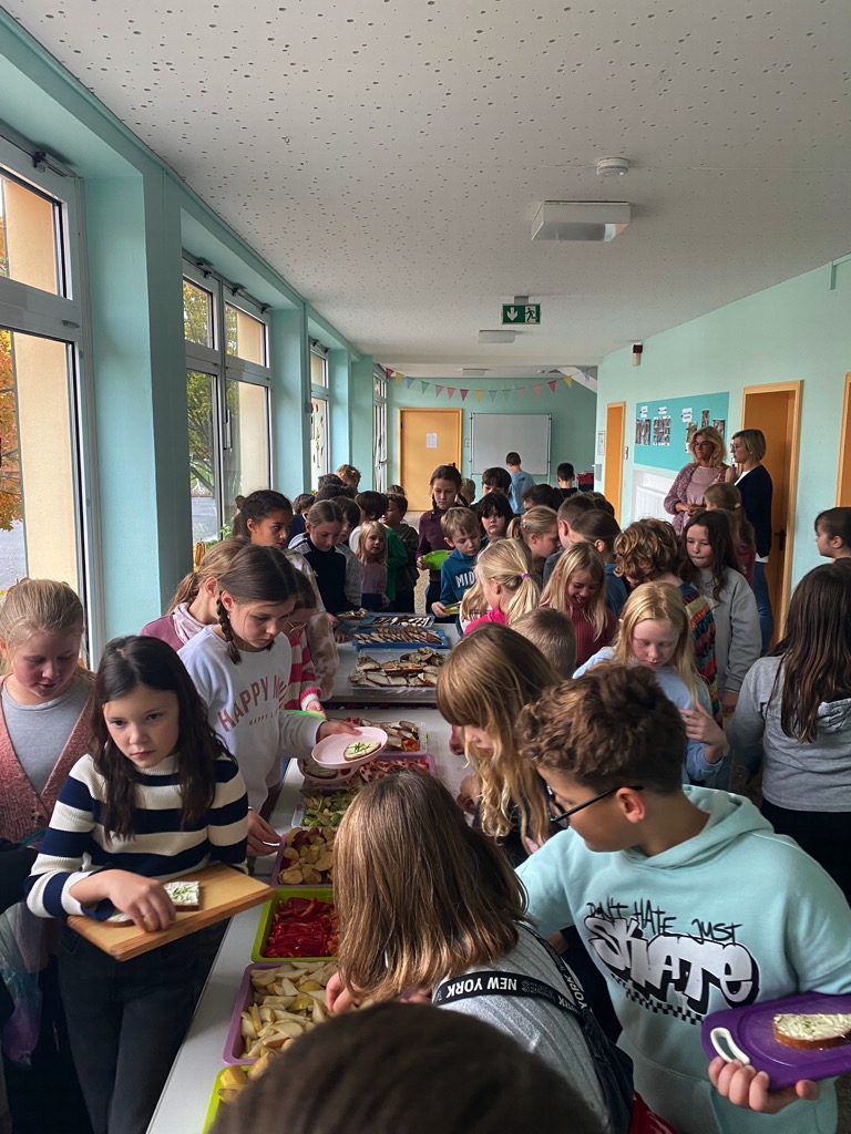 Am Freitag endete die Woche mit einem gesunden Frühstück, das ein voller Erfolg war. REWE Götzelmann unterstützte die Aktion großzügig mit frischen Lebensmitteln und viele Eltern brachten zusätzlich leckere Äpfel mit. Gemeinsam wurde geschnippelt, probiert und genossen – ein schöner Abschluss einer rundum gelungenen Woche.„Viele kleine Leute, an vielen kleinen Orten, die viele kleine Dinge tun, können das Gesicht der Welt verändern.“