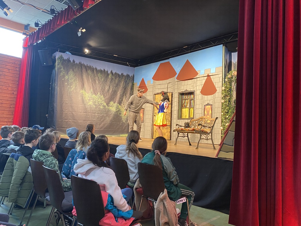 Ein besonderes Erlebnis stand kürzlich für die vierten Klassen unserer Schule auf dem Programm: Ein Ausflug nach Sulzheim zum Theaterbesuch! Die Theatergruppe „Theaterkids Sulzheim“ präsentierte dort das Stück „Schneewittchen – Die ganze Wahrheit“ – eine moderne, humorvolle und zugleich spannende Neuinterpretation des bekannten Märchens.
